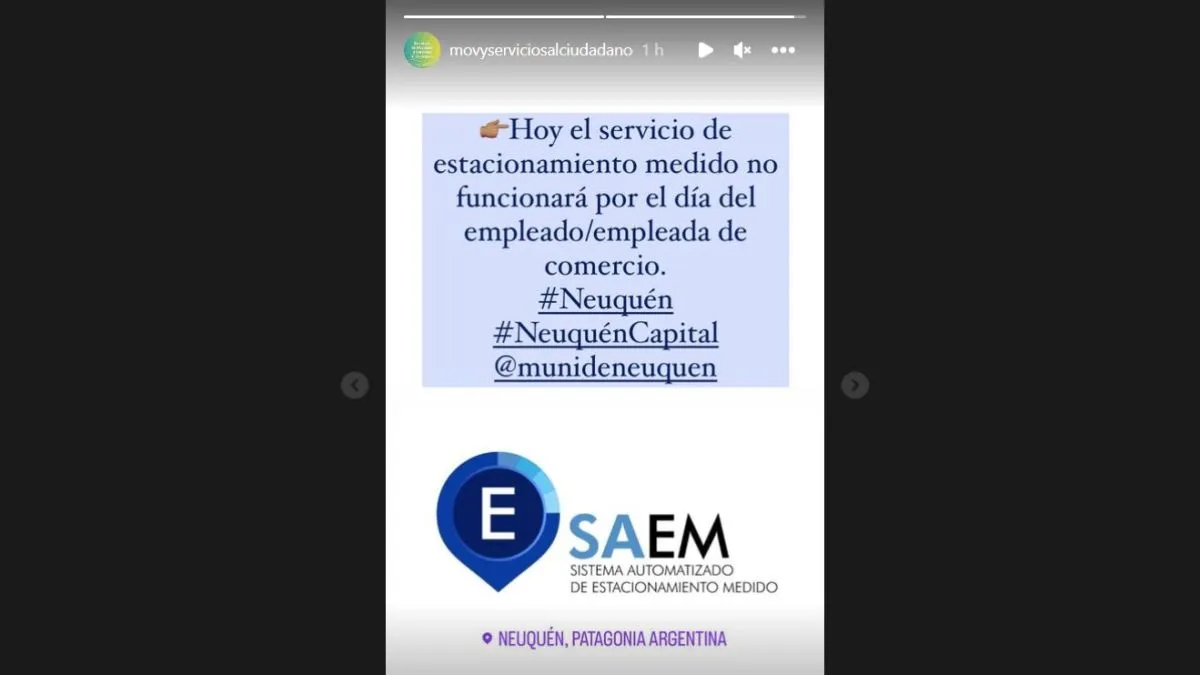 La Municipalidad de Neuquén informó que este lunes, el servicio brindado por SAEM no funcionará por el Día del Empleado de Comercio.