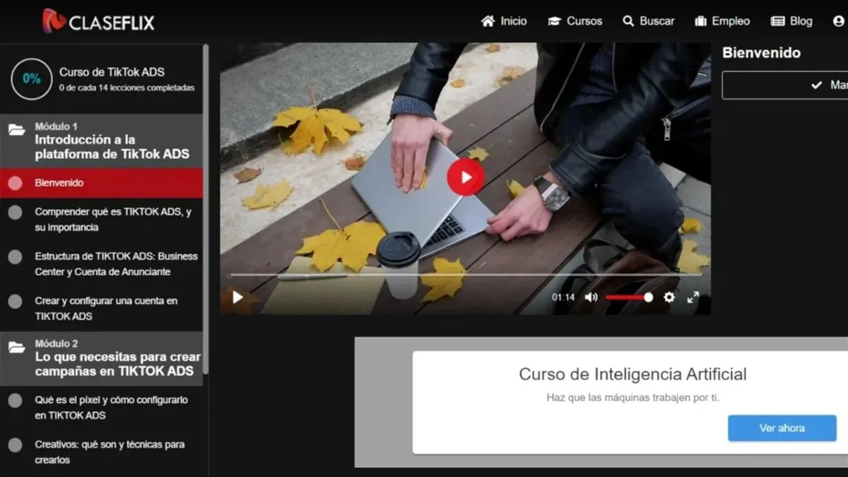 Claseflix es una plataforma de contenidos educativos donde hay cientos de cursos diferentes.