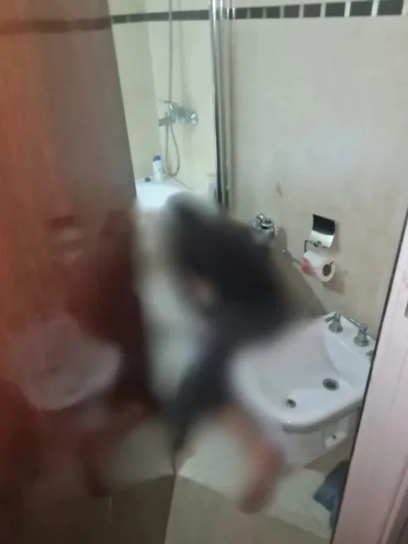 - En el baño , fue encontrada Laura Leguizamón, madre de los chicos y principal sospechosa de la masacre. Su cuerpo estaba recostado sobre el bidet, con lesiones autoinfligidas en el pecho y cortes en las muñecas. La autopsia comprobó que las heridas eran compatibles con el suicidio.