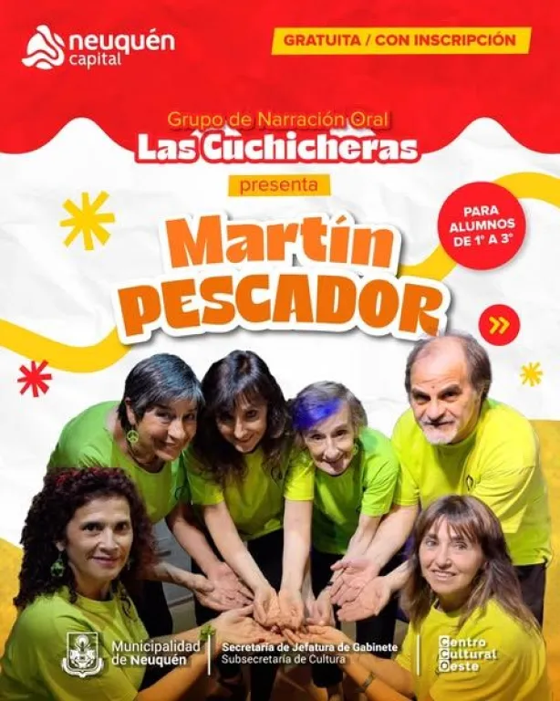 En el Centro Cultural Oeste se presentará “Martín Pescador”, una propuesta del grupo de narración oral Las Cuchicheras, que invita a niñas y niños a sumergirse en relatos vinculados al ambiente, con el objetivo de reflexionar sobre la importancia de la naturaleza, su cuidado y