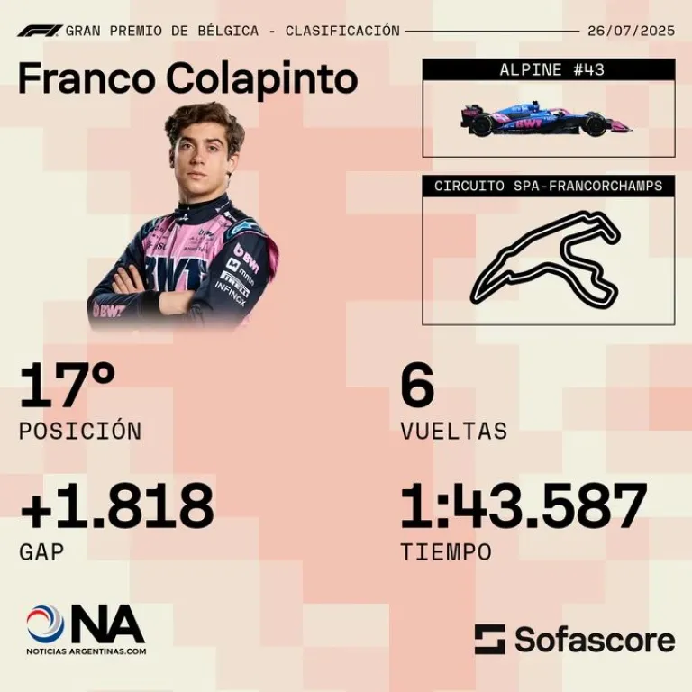Tras la finalización de la Clasificación del Gran Premio de Bélgica, el piloto argentino de Alpine, Franco Colapinto, realizó un análisis crítico sobre su actuación dentro de la pista del Circuito de Spa-Francorchamps.