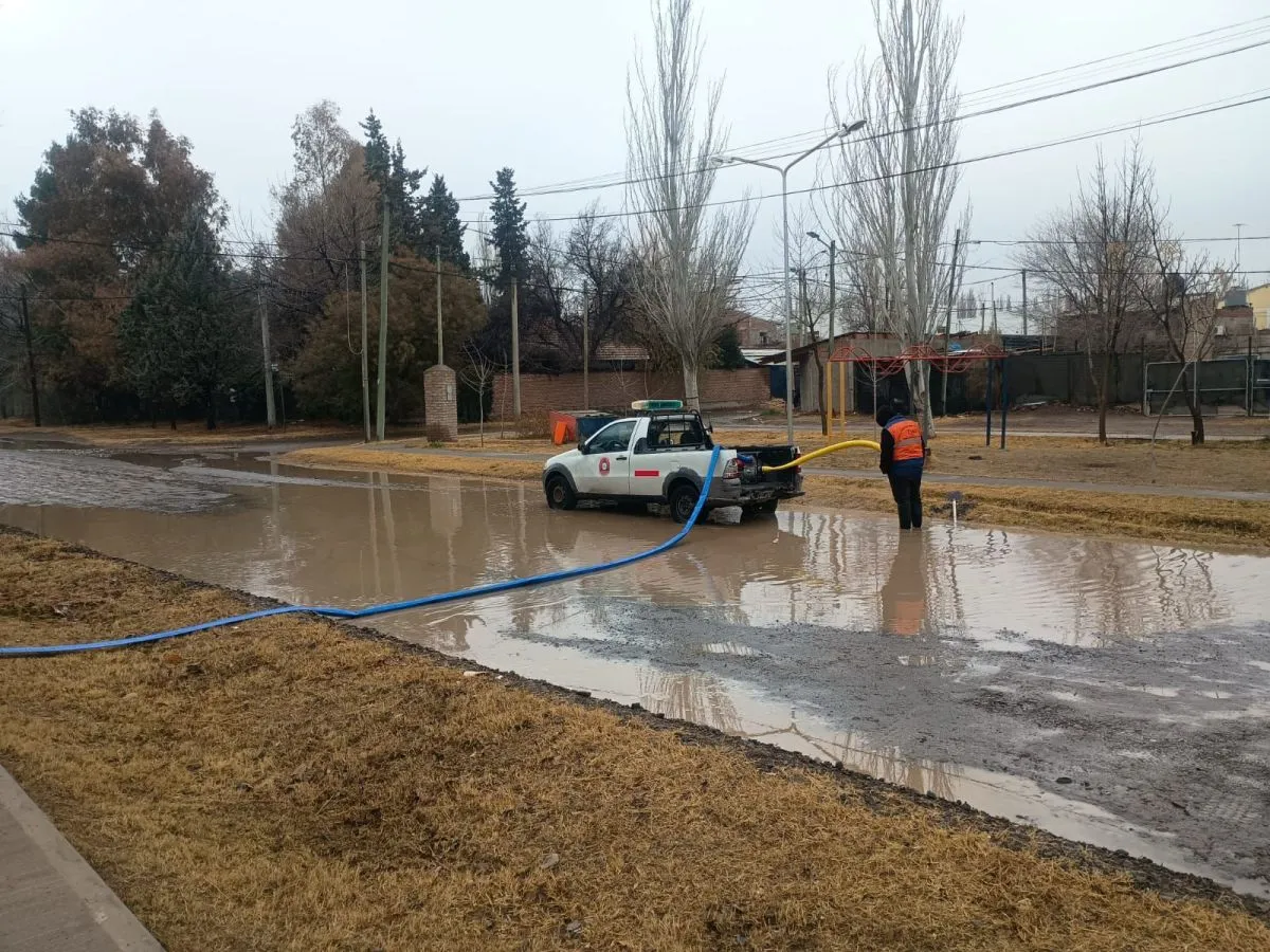 También se realizaron tareas de asistencia a vehículos atascados por la nieve, principalmente en Ruta 7, la Autovía Norte y la zona de Soldi. A su vez, Defensa Civil trabajó con motobombas para desagotar calles anegadas, especialmente en el oeste de la ciudad.