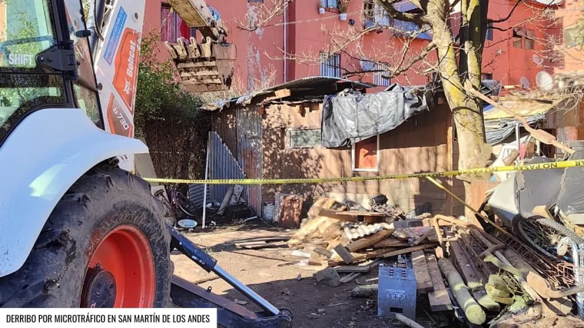 Una casilla construida en un complejo de monoblocks en la ciudad de San Martín de los Andes, y cuyo ocupante fue acusado por vender drogas, fue derribada hoy durante un operativo que presenciaron el gobernador Rolando Figueroa, junto al fiscal general José Gerez, el ministro de Seguridad Matías Nicolini y el intendente Carlos Saloniti, entre otras autoridades.
