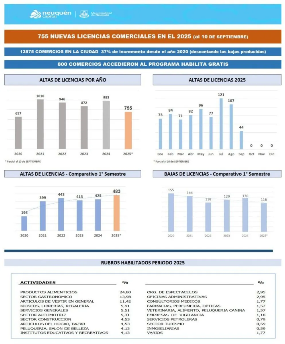 “En 2025 la tendencia es particularmente positiva: se registraron 755 nuevas licencias al 10 de septiembre pasado, con un primer semestre récord que registra 483 altas y picos destacados en los meses de julio y agosto, el registro más alto de la serie desde 2020”, subrayó la subsecretaria de Comercio, Gabriela Cagol.