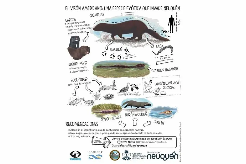 La Secretaría de Ambiente y Recursos Naturales del Ministerio de Energía informa que, en coordinación con la Administración de Parques Nacionales, se intensifican las colaboraciones coordinadas para el control del visón americano (Neogale vison) en ambientes provinciales y áreas protegidas nacionales ubicadas en Neuquén.