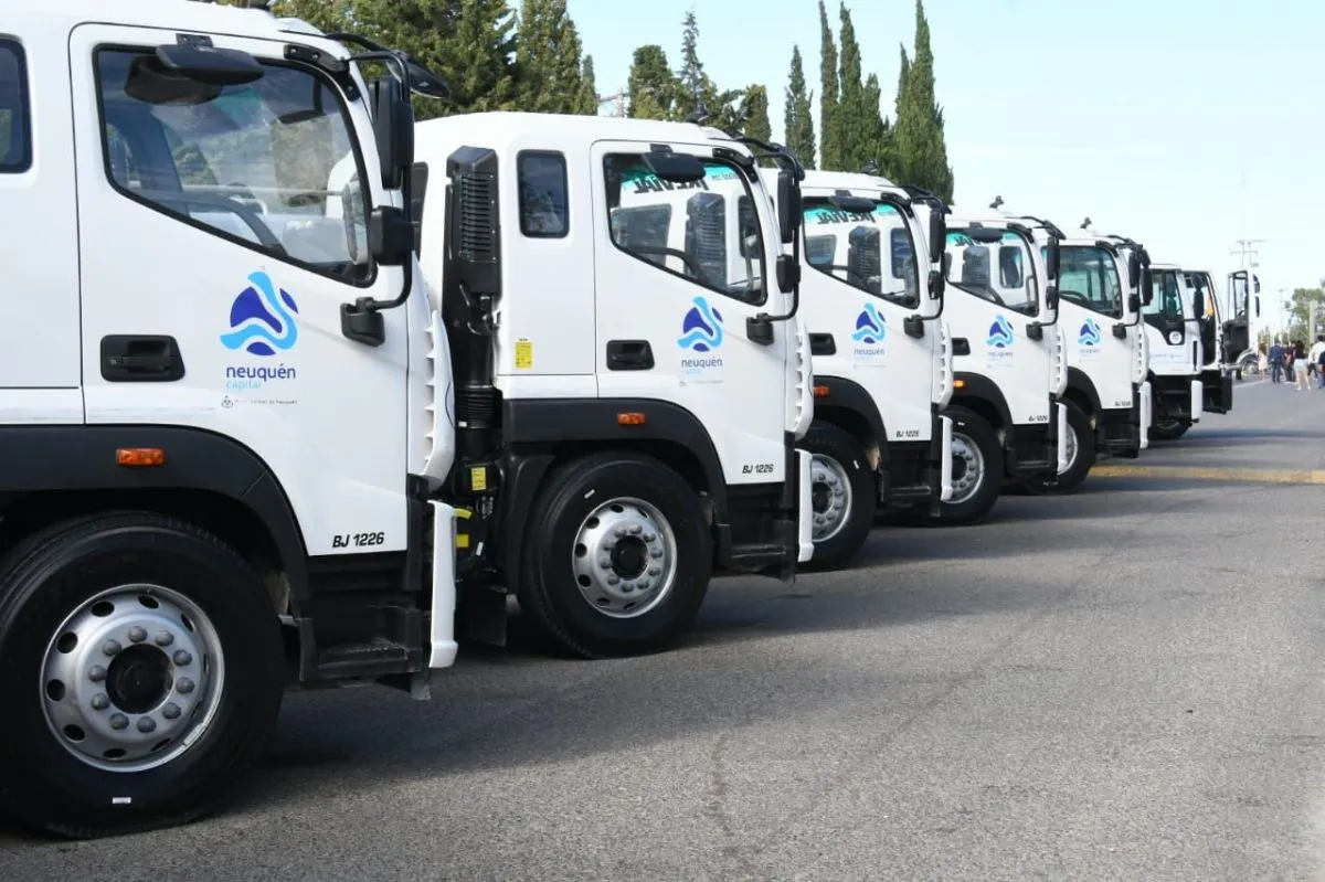 La nueva flota está compuesta por diez camiones cisterna 0 km: seis serán destinados al servicio de provisión de agua potable y cuatro al riego de calles de tierra. Además, se incorporaron tres motoniveladoras que reforzarán las tareas de mantenimiento vial en distintos sectores de la capital neuquina.