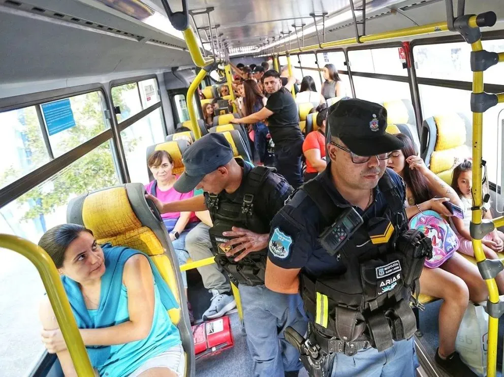 Operativo de control policial en el transporte público