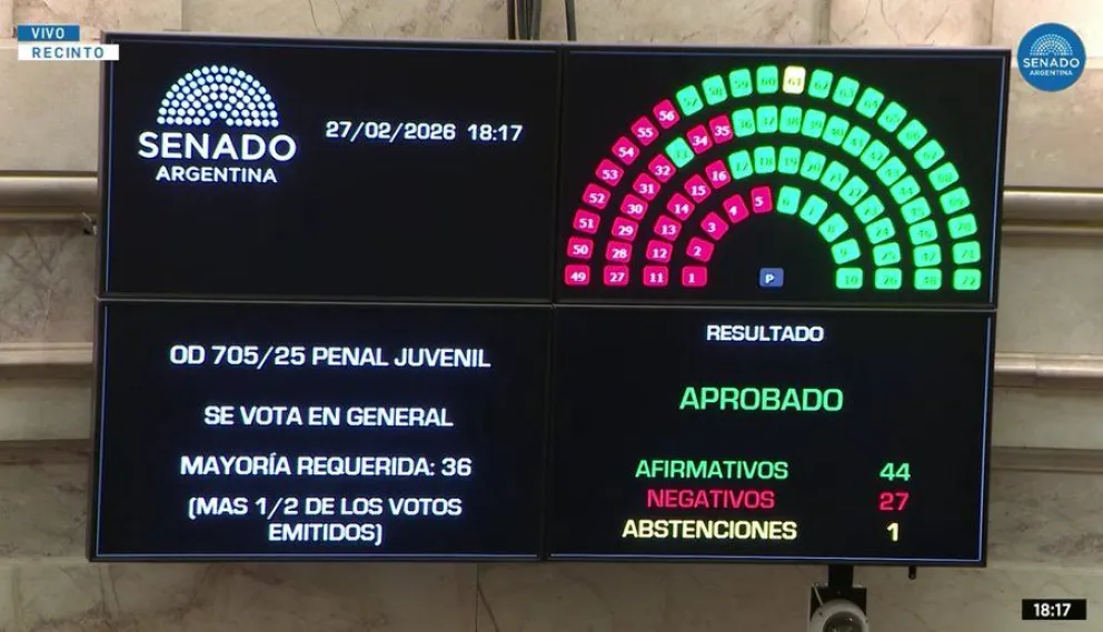 Con 44 votos afirmativos y 27 votos negativos, el oficialismo aprobó en el Senado la Ley Penal Juvenil.