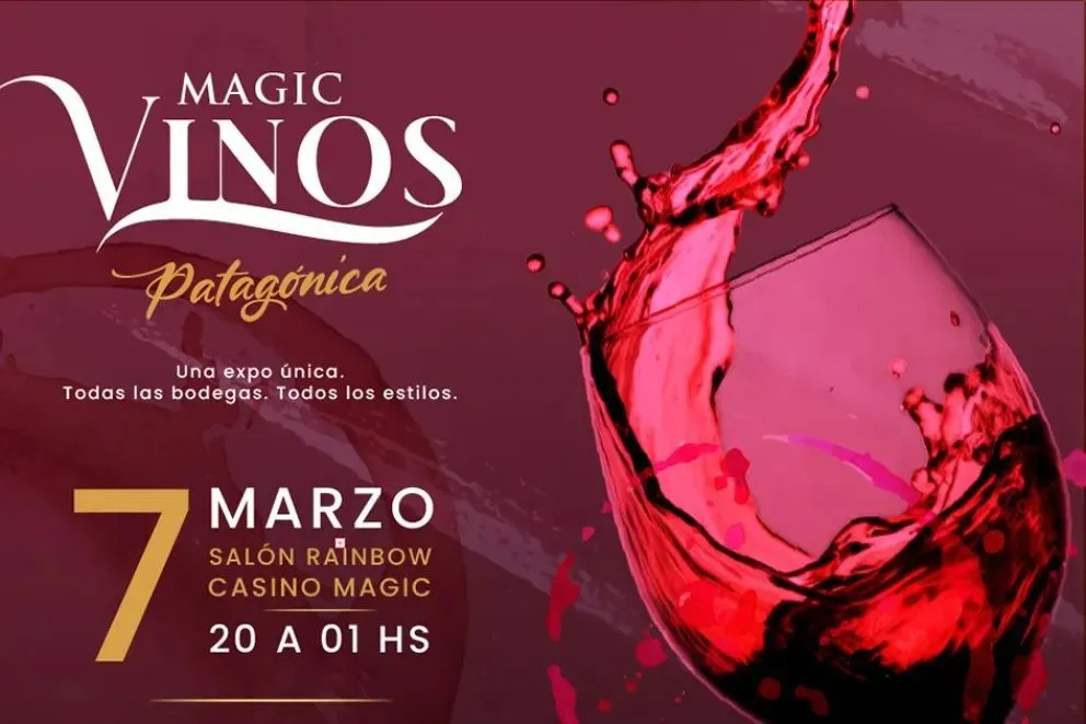 Como parte de la celebración por la Vendimia Neuquina 2026, este sábado 7 de marzo se realizará la Expo Vino del Casino Magic en el Salón Rainbow desde las 20 a la 1. Se trata de un evento único y exclusivo que celebra la identidad, la calidad y el carácter de los vinos patagónicos.