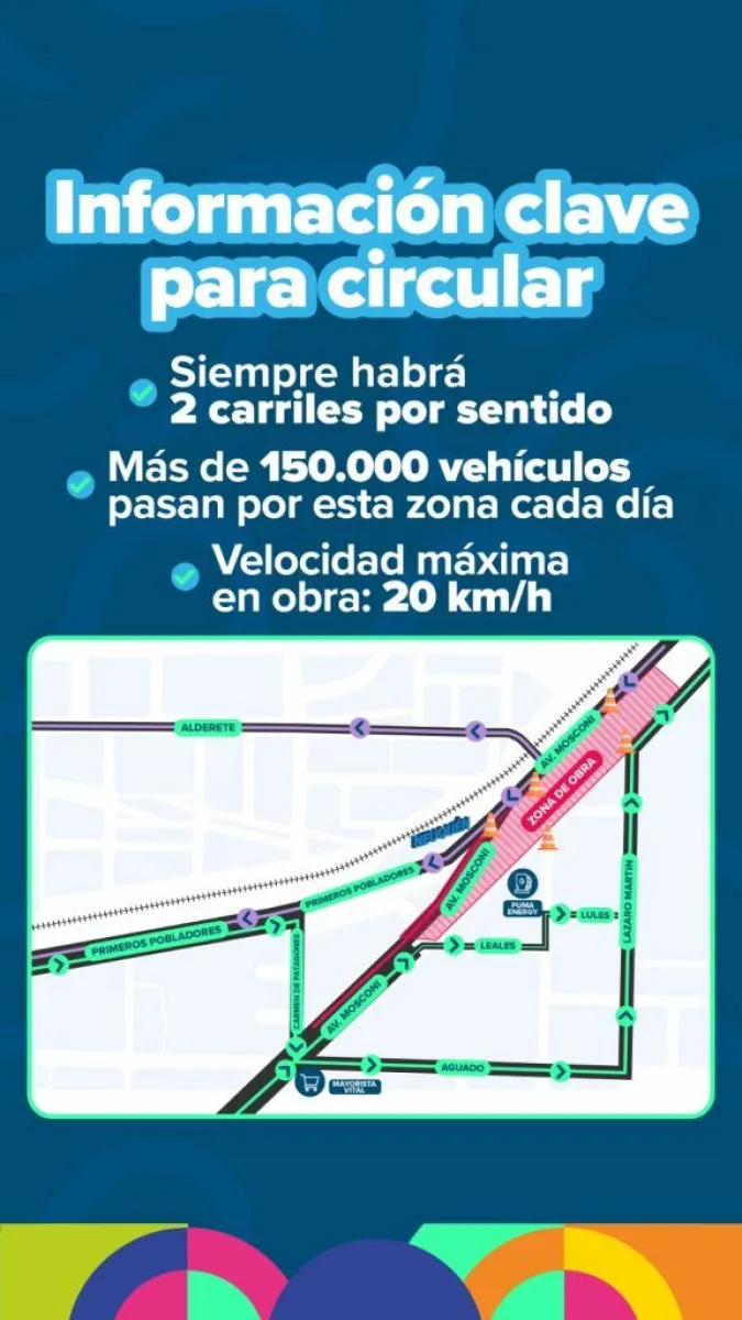 Además, quienes utilicen el cruce por Alderete no podrán realizar el retome sobre el espacio verde. En ese caso, deberán descender por colectora hasta Carmen de Patagones, continuar por Aguado, Lázaro Martín y desde allí acceder al puente.
