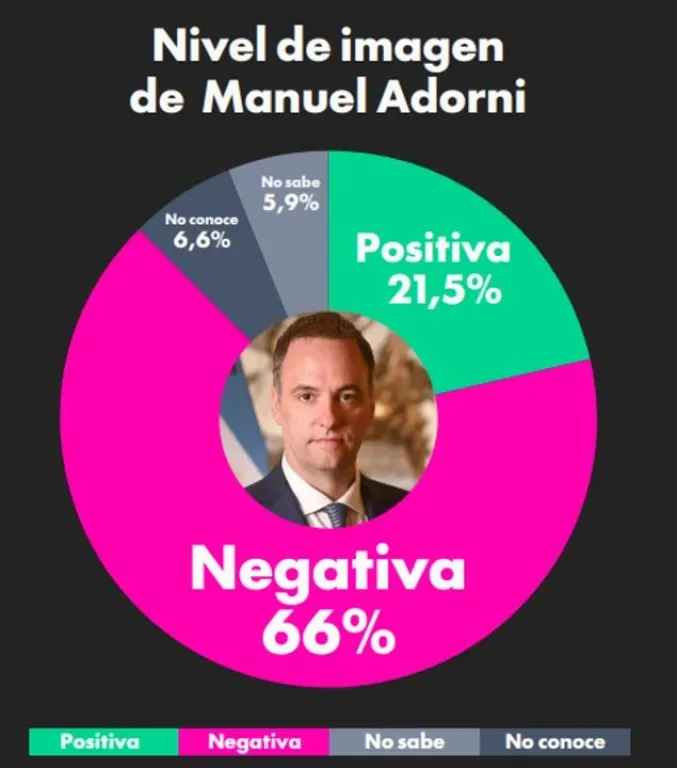 Según puede verse en la comparación con años anteriores, Adorni tenía una imagen negativa de 55,4% en febrero de 2025; 58,1% en octubre de 2024; 52,8% en febrero de 2024 y 50,3% en enero del mismo año, algo que evidencia el crecimiento de la tendencia negativa.