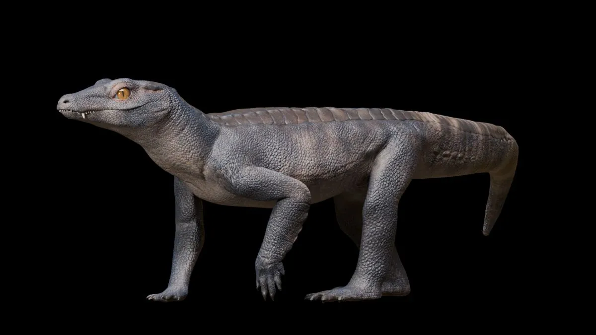 Los cocodrilos de esa época diferían notablemente de los actuales. Lejos de ser grandes depredadores acuáticos que acechan en ríos, se trataba de animales más pequeños y adaptados a la vida completamente terrestre. Su postura también era distinta: caminaban con las patas erguidas, ubicadas por debajo del cuerpo, lo que les daba un andar más ágil y elevado, similar al de un mamífero actual.