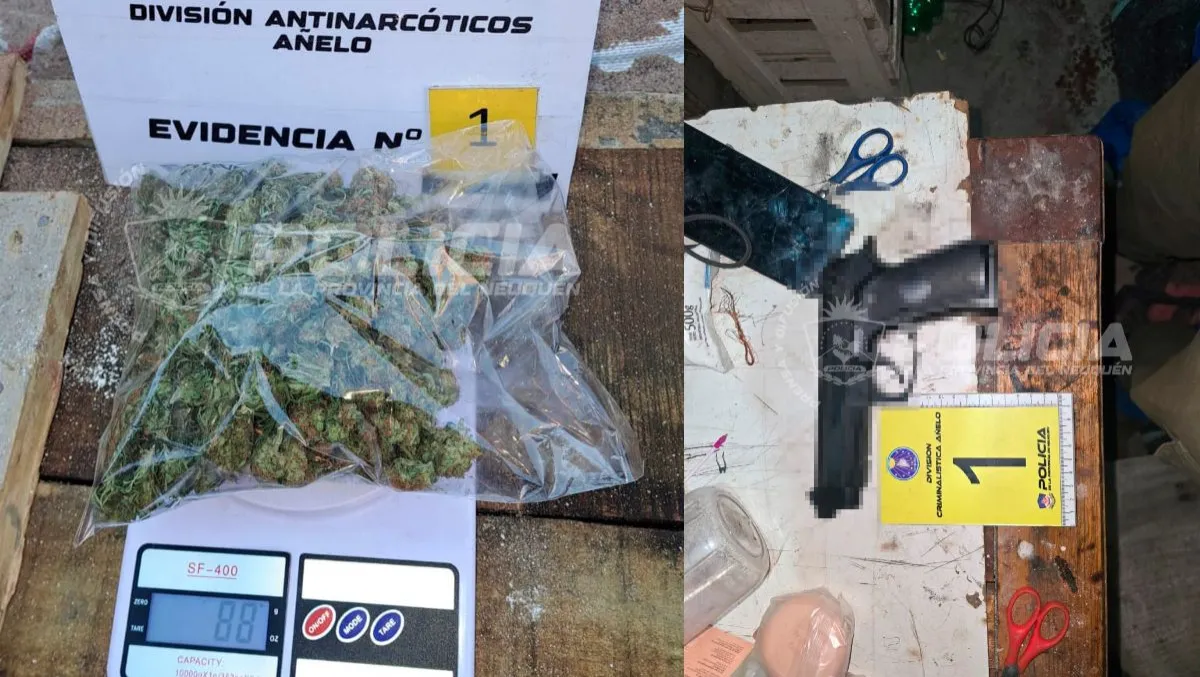 En esta segunda vivienda, los uniformados detectaron la presencia de frascos con una sustancia vegetal compatible con cannabis, por lo que se dio intervención a personal especializado en narcóticos, que realizó el pesaje, embalaje y las actuaciones correspondientes. Asimismo, se secuestraron teléfonos celulares y otra réplica de arma de fuego de similares características a la incautada en el primer procedimiento.